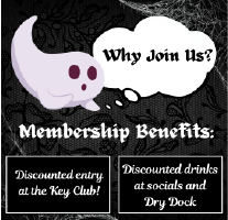 This post had the purpose of informing our followers about our membership that could be purchased off a website called engage. Here I advertised the benefits of buying a membership and the positives that people would gain. I used the colours black and white to link to the society and ensured that the text was easy to read and stood out. I decided to use a thought bubble to showcase the text to represent a common question among those interested in us such as "Why should I buy a membership?", which added to the design. I also made use of gothic graphics such as black lace and spiderwebs so the post would be seen as appealing to other members. For the post's main graphic, I decided to use a ghost as this could be seen as "cute" and help the Society seem more casual and less intimidating. It also continued to link to the representation of goth and alternative culture. This post is currently pinned to the Rock and Alternative Society's Instagram as it is both informative and appealing in visuals, allowing it to continue representing the society and its memberships.