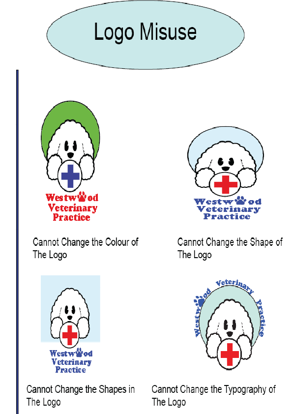 By using the name of the business "Westwood Veterinary Practice" in the logo I am able to immediately show audiences exactly which business the logo is representing. The entirety of my design uses soft edges to relate to the idea of security and a soft environment. I had the aim of making the logo look as welcoming and friendly as possible, and my choice of colour, shapes and typography helped to represent this.