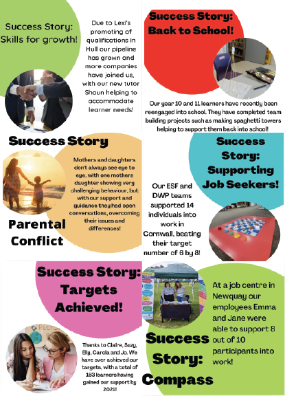 To finish off my work experience I made a series of social media posts created to showcase the companies’ successes across various areas. I made sure to use bold fonts to help the achievements stand out and used a variety of bright colours to make the posts stand out online. I made sure each post had an image and a small piece of text explaining the achievement. This allowed Whtehead Ross to help their staff feel successful as well as their learners and was a great way for them to show appreciation to others.